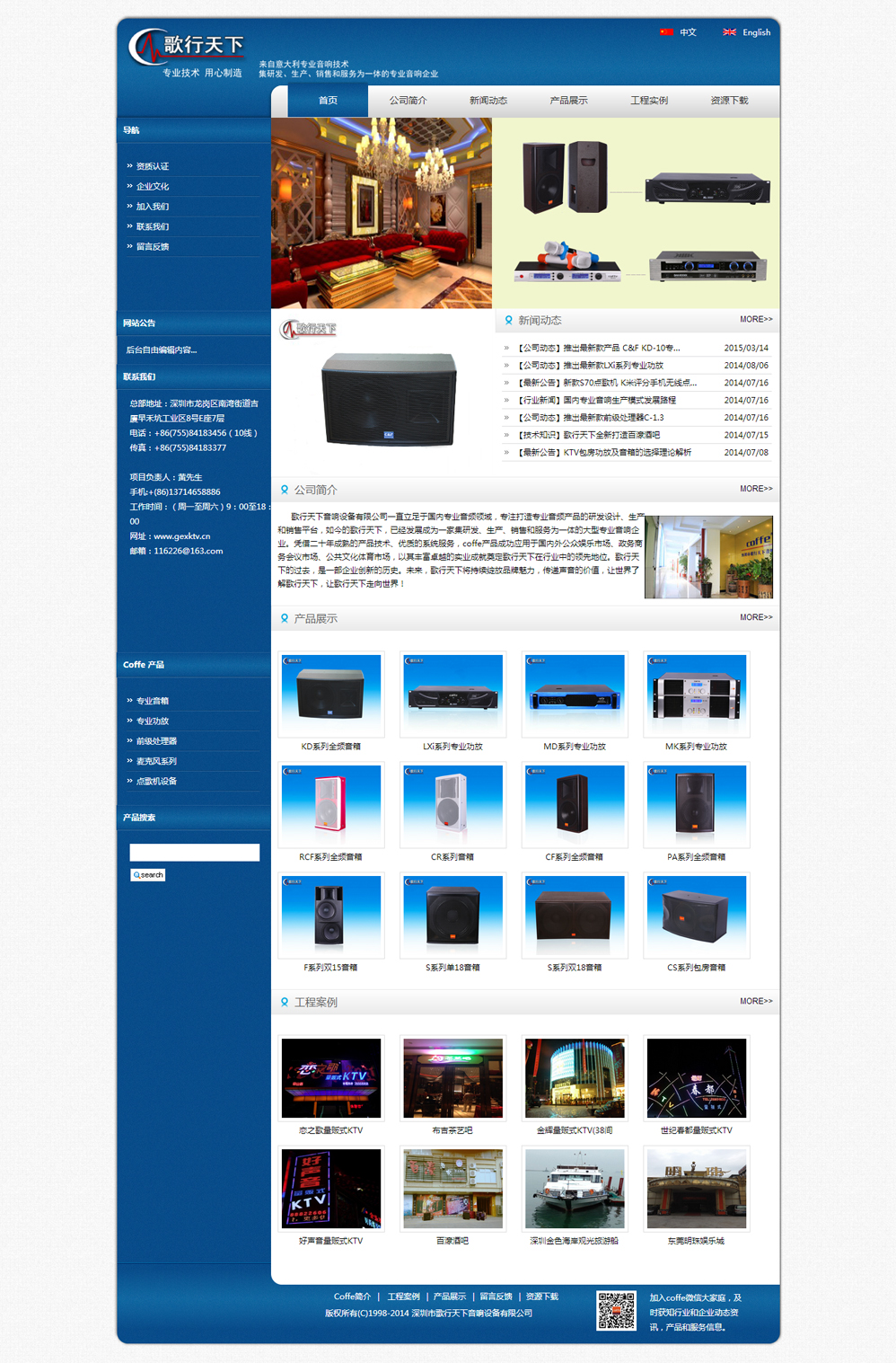 歌行天下音響設備有限公司一直立足于國內專業(yè)音頻領域,專注打造專業(yè)音頻產品的研發(fā)設計、生產和銷售平臺,如今的歌行天下,已經(jīng)發(fā)展成為一家集研發(fā)、生產、銷售和服務為一體的大型專業(yè)音響企業(yè)。憑借二十年成熟的產品技術、優(yōu)質的系統(tǒng)服務,coffe產品成功應用于國內外公眾娛樂市場、政務商務會議市場、公共文化體育市場,以其豐富的實業(yè)成就奠定歌行天下在行業(yè)中的地位。歌行天下的過去,是一部企業(yè)創(chuàng)新的歷史。未來,歌行天下將持續(xù)綻放品牌魅力,傳遞聲音的價值,讓世界了解歌行天下,讓歌行天下走向世界!