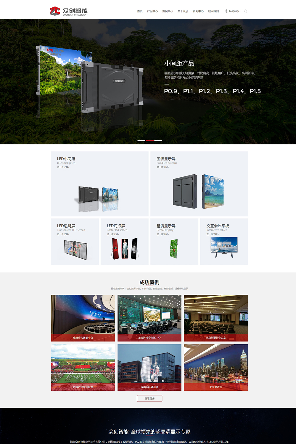 深圳眾創智能顯示技術有限公司,是海康威視(股票代碼:002415)深圳市總代理商;位于深圳市光明區。