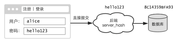 先來回顧下,傳統網站是如何處理口令的 —— 前端通常什么都不做,僅僅用于提交,口令都是由后端處理的: